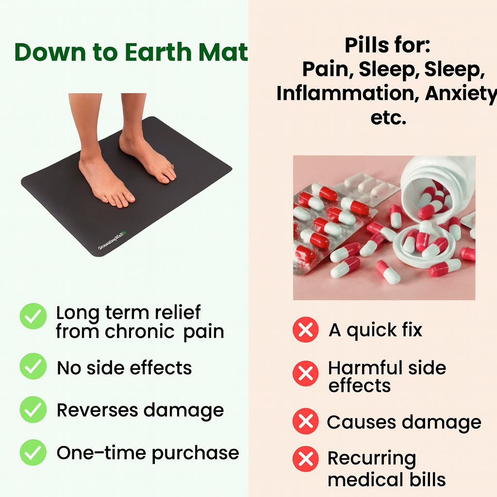 Answer 2: Grounding helps fight common issues like stress, inflammation, and restless sleep. By restoring your body’s natural energy balance, it supports pain relief, deeper relaxation, and overall vitality—without relying on pills or quick fixes.
